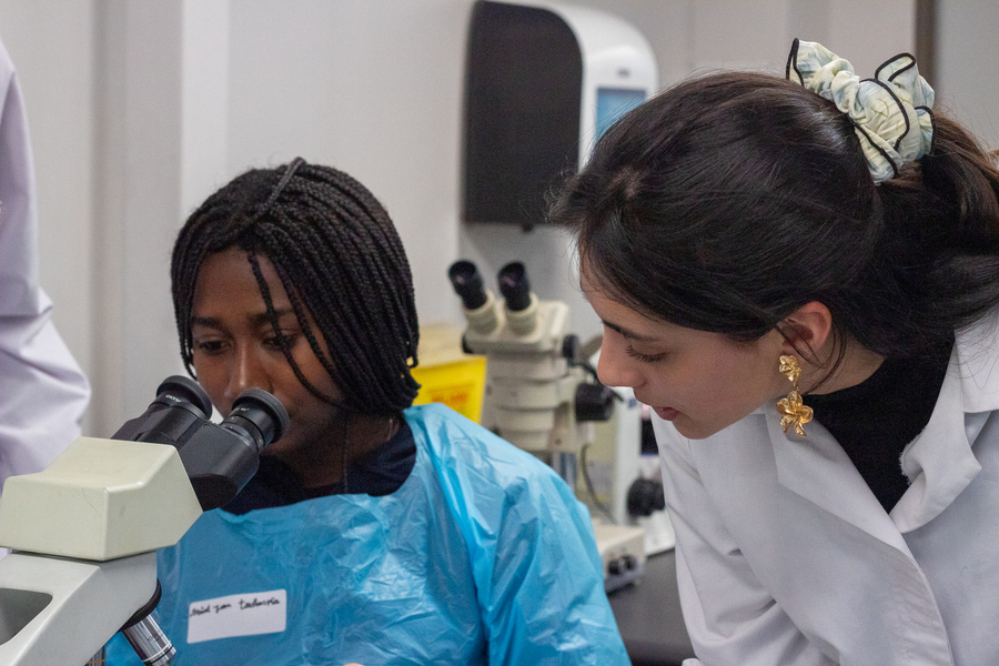 Así, guiados por los voluntarios de ConCiencia y la académica UC, Loreto Véliz, realizaron el práctico “C. elegans como modelo de estudio biológico”, en el que se familiarizaron con el uso del microscopio óptico y reconocieron distintos tipos celulares en el tejido de origen animal.