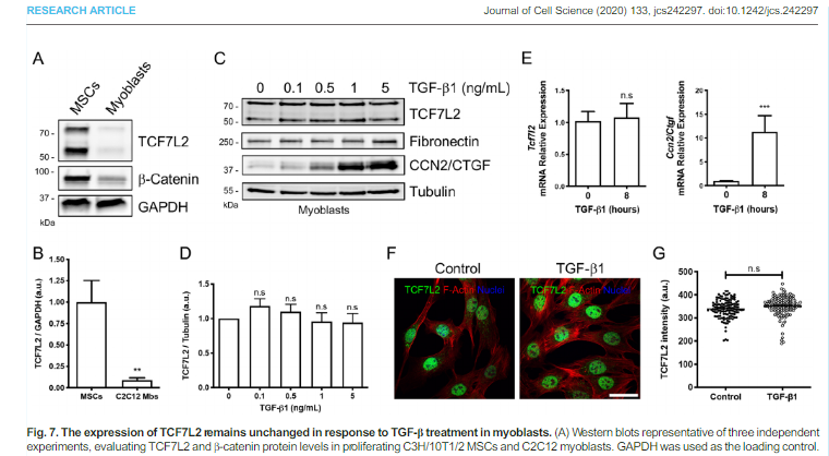 “Aquí investigamos la regulación celular y molecular de un factor de transcripción clave de la ruta Wnt Tcf/Lef, TCF7L2/TCF4 por TGF-β en fibroblastos. Primero, determinamos que los miembros de la familia Tcf/Lef se expresan diferencialmente en fibroblastos residentes en tejidos. En segundo lugar, demostramos que TCF7L2 está regulado negativamente por TGF-β, inducido por daño, en estas células del estroma, pero no en otro tipo de células como los mioblastos”, indica Osvaldo.