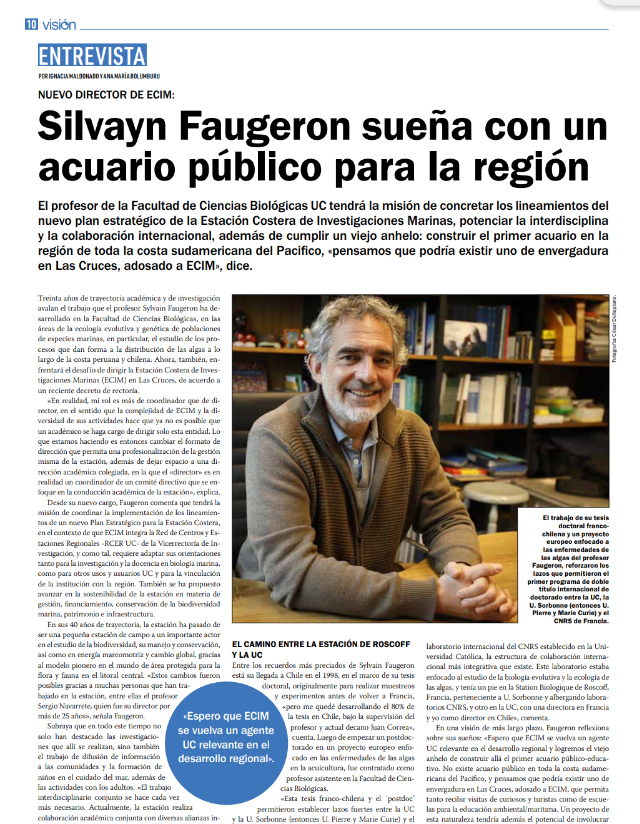 Profesor Sylvain Faugeron: “Espero que ECIM se vuelva un agente relevante en el desarrollo regional y logremos el viejo anhelo de construir el primer acuario público”