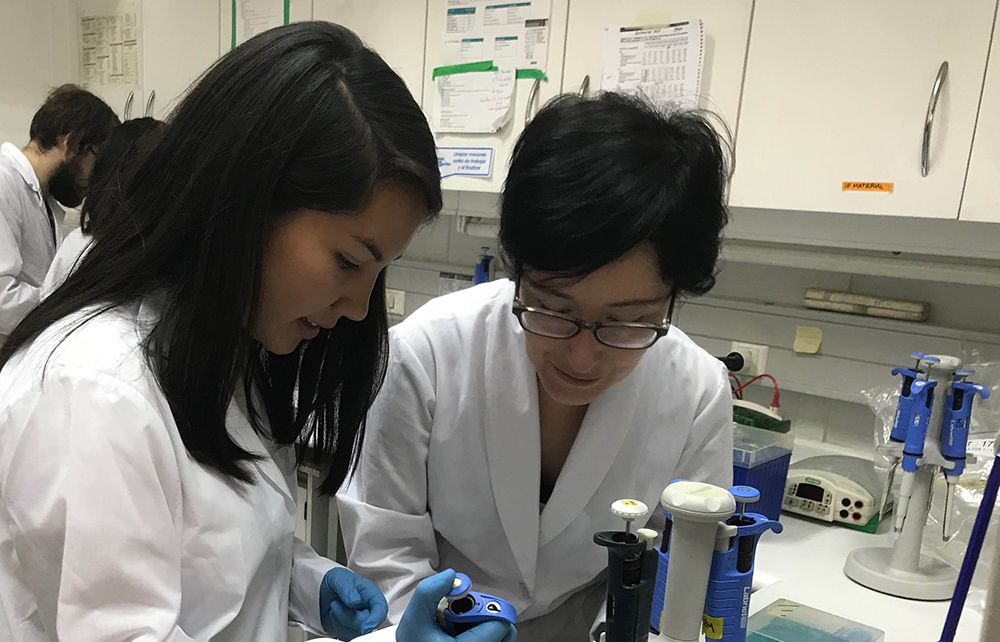 “Esto es lo que yo hago cada día y esto es lo que quiero decirles a las jóvenes científicas: sin duda yo he tenido mucha suerte en mi vida, siempre he tenido el apoyo de mi familia en mi desarrollo como científica, y he podido viajar lo que me ha enriquecido como persona. Nunca he pensado que por ser mujer tengo límites, y si bien, el camino no siempre es fácil, estoy convencida de que uno puede lograr lo que sea con mucho trabajo, pasión y compromiso. Espero poder transmitir este mensaje a las jóvenes científicas del país y de la facultad, a través de mis clases y mi trabajo científico”.