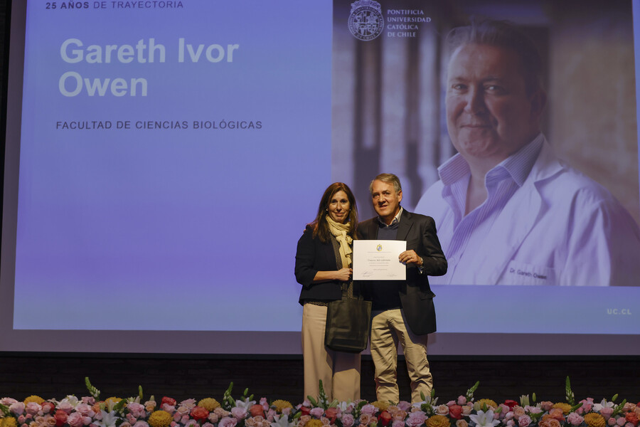 Entre el profesorado que fue reconocido se destacó la trayectoria de 25 años en la UC de la académica Miriam Fernández, y de los académicos, Mauricio Lima, Francisco Melo y Gareth Owen.