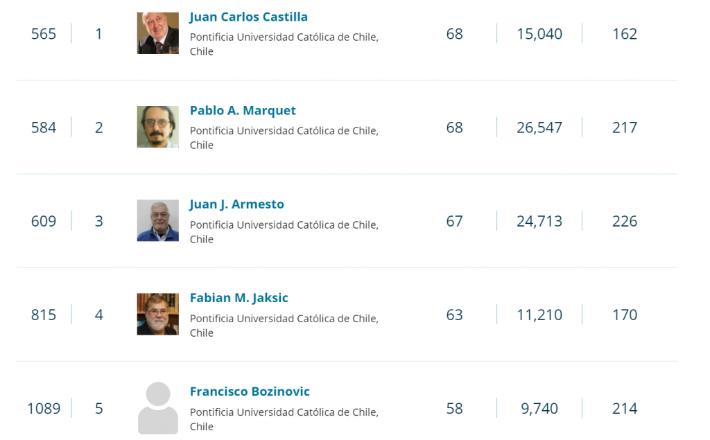Cabe destacar que a nivel nacional, tanto el profesor Juan Carlos Castilla como el profesor Nibaldo Inestrosa, se encuentran en el primer lugar de su área. Para revisar el ranking completo puedes ingresar aquí