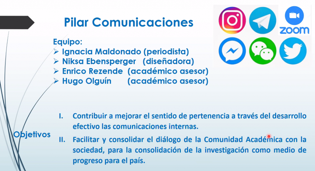 La jornada concluyó con una ronda de preguntas y también felicitaciones para el actual Director de Investigación. Además la audiencia valoró las distintas presentaciones que se realizaron los dos días de esta Jornada en su primera versión online, en donde participaron alrededor de 70 personas (académicos, administrativos y representantes estudiantiles) por cada bloque.