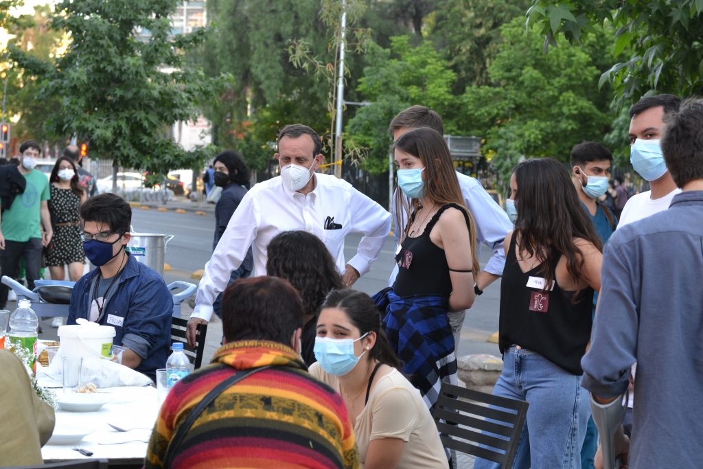 “(…) Siempre es valioso estar presencialmente y acompañarlos, en la preparación, en el servicio, en la levantada de mesa, el traslado de las sillas, y en el diálogo que se da con confianza y con cercanía con los estudiantes. Por lo tanto, felicito a quienes lo organizaron y agradezco el apoyo de la FCB, a su decano, a la profesora Cecilia Riquelme y a todos los que aportan para que esto sea posible”, señaló el rector.