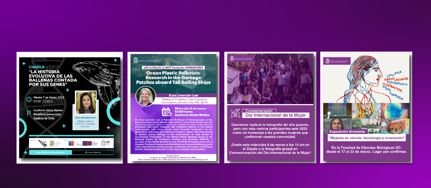 La búsqueda de igualdad de oportunidades y justo reconocimiento a la labor de la mujer sigue vigente. En este contexto, es gratificante ver un progreso en nuestra comunidad de Ciencias Biológicas, donde hemos visto un aumento de mujeres ingresando a nuestras disciplinas, así como a muchas destacándose y siendo reconocidas por su labor e investigación.  Cada una […]