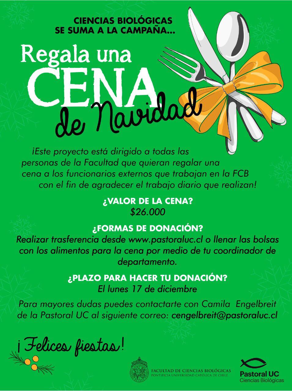 El proyecto Cenas de Navidad de la Pastoral UC, busca generar un sentimiento de comunidad y de colaboración entre todos los miembros con el fin de agradecer el trabajo diario y silencioso que realizan todos los trabajadores externos. Este año la Facultad de Ciencias Biológicas espera reunir el dinero para al menos 39 cenas, que […]