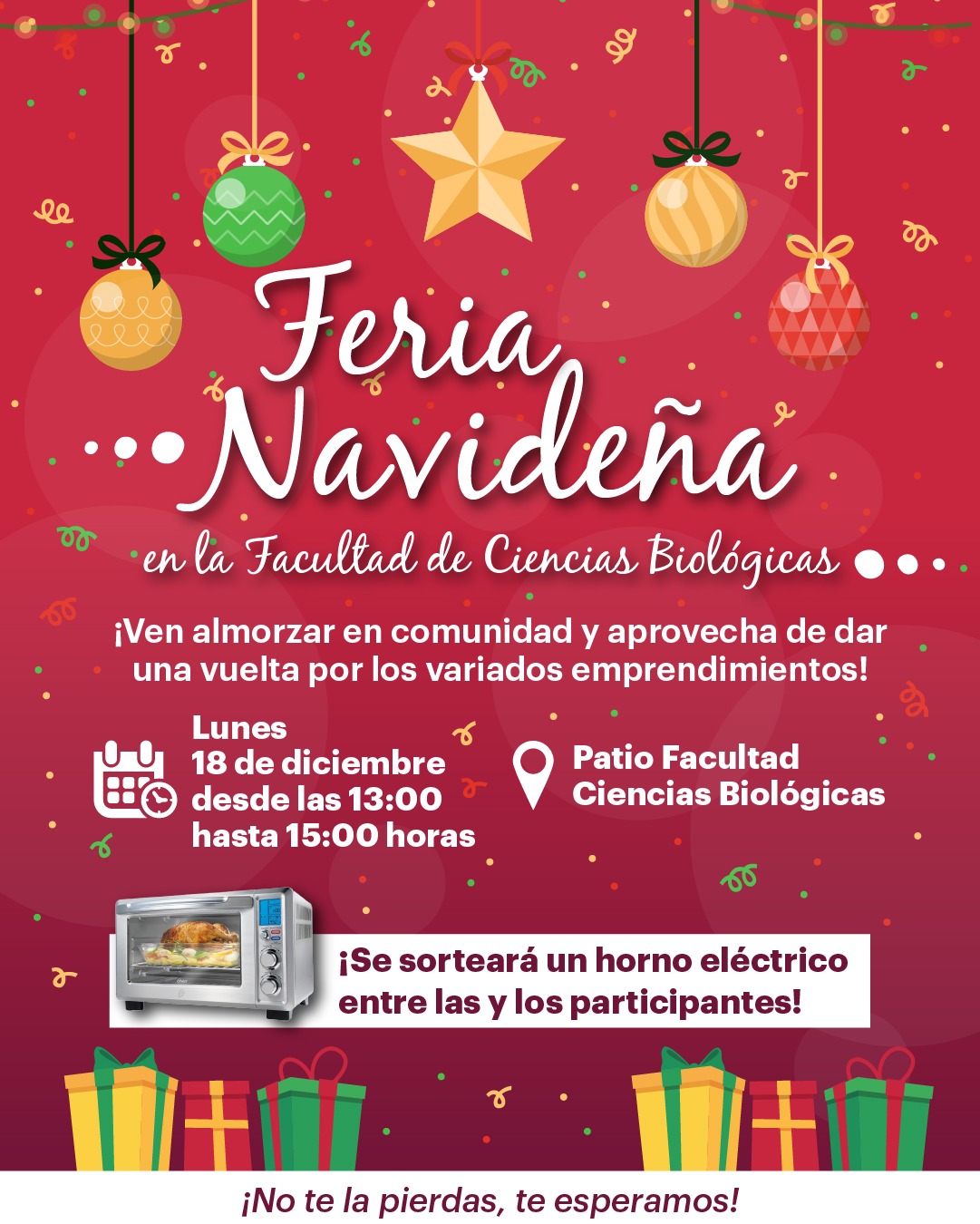¡Este lunes 18 de diciembre desde las 13:00 horas te esperamos en la Feria Navideña! Se sorteará un horno eléctrico entre quienes participen. Lugar: Patio FCB