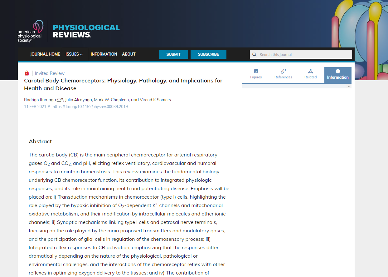 Revista Physiological Reviews publica artículo del Dr. Iturriaga sobre el impacto de quimiorreceptores del cuerpo carotídeo en diversas patologías
