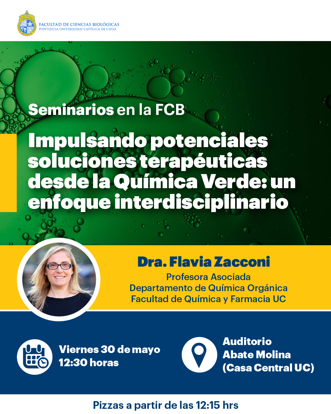No te pierdas el seminario “Impulsando potenciales soluciones terapéuticas desde la Química Verde”: un enfoque interdisciplinario | Viernes 30 de mayo 12:15 hrs