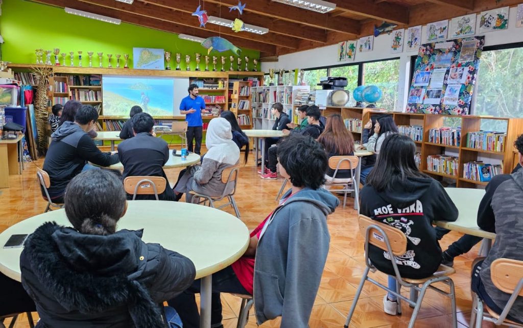 Actualmente, el profesor se encuentra colaborando con la investigadora Tahira Edmunds en el proyecto “Estudio bio-socioambiental de los humedales de Rapa Nui”. Como parte de las actividades de difusión realizaron una salida a terreno y charlas con estudiantes del colegio Hermano Eugenio Eyraud. Créditos fotográficos: Tahira Edmunds