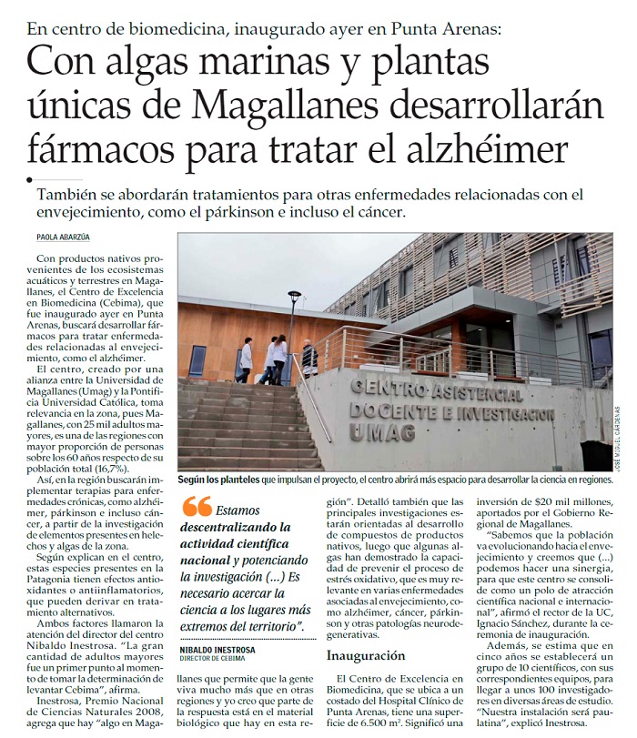 En este año de pandemia, el CEBIMA ha destacado con 21 papers. De igual forma, ha iniciado el equipamiento para trabajar con el nemátodo Caenorhabditis elegans, que permitirá realizar estudios genéticos y moleculares y avanzar rápido en la detección de productos naturales que permitan combatir enfermedades de alta prevalencia en la Región de Magallanes y la Antártida Chilena.