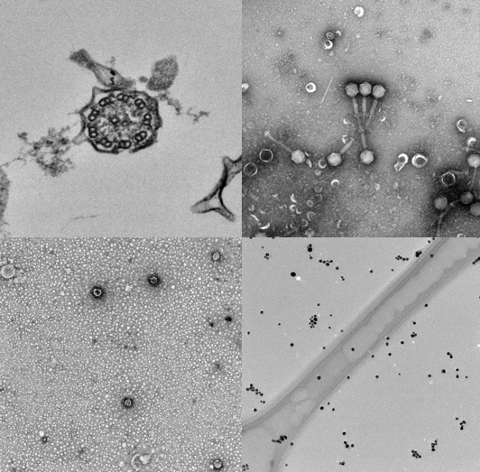 Créditos fotografía: Imágenes obtenidas con el microscopio TEM Talos; cilios humanos, bacteriofagos, exosomas y nanoparticulas.
